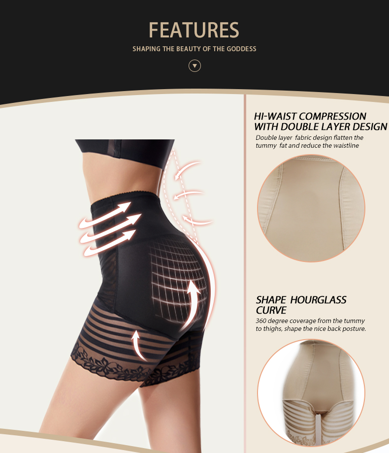 1. Tummy Compression Design: Double layer reduce the waistline and flatten the tummy