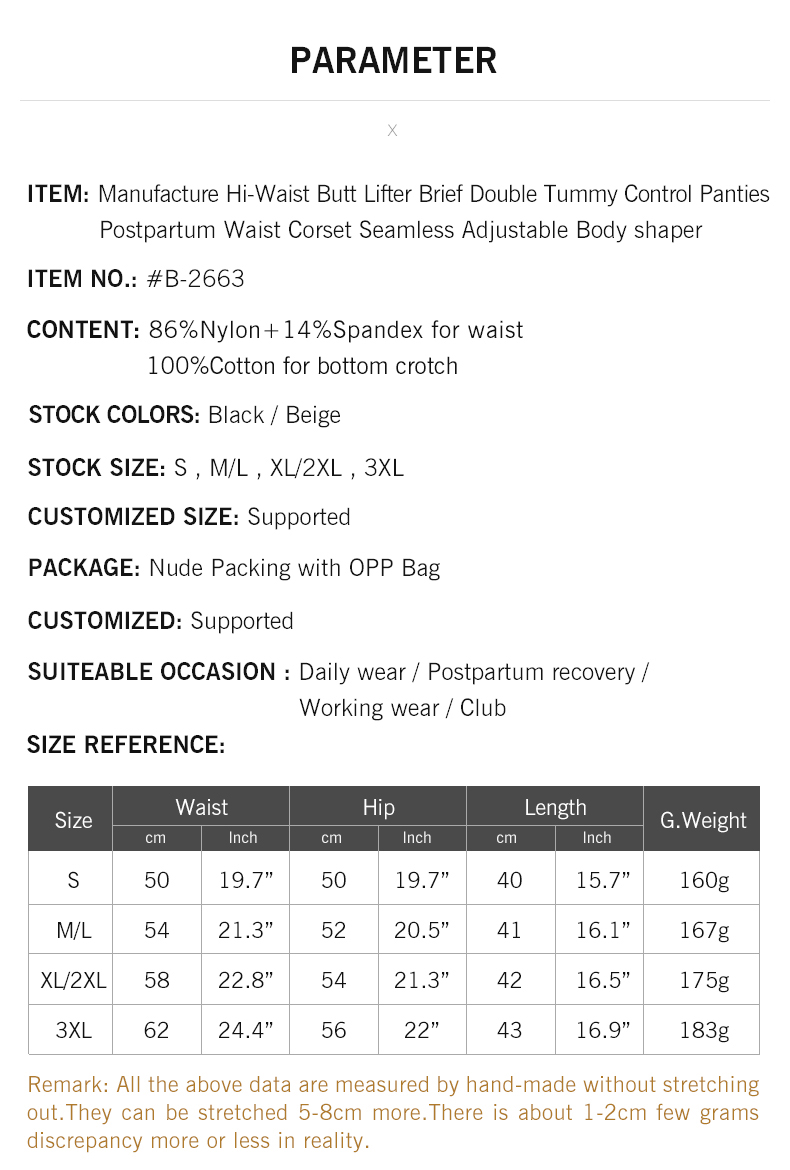 ITEM:Manufacture Hi-Waist Butt Lifter Brief Double Tummy Control Panties Postpartum Waist Corset Seamless Adjustable Body shaper